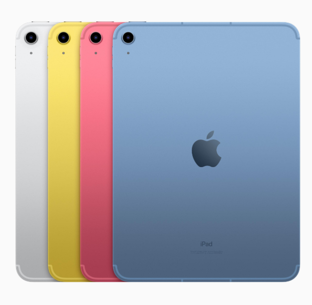The iPad 10th generation features a modern, clean design with flat edges and a premium aluminum body that feels solid in hand. It comes in vibrant colors including pink, blue, yellow, and silver—making it perfect for users who want both performance and style.